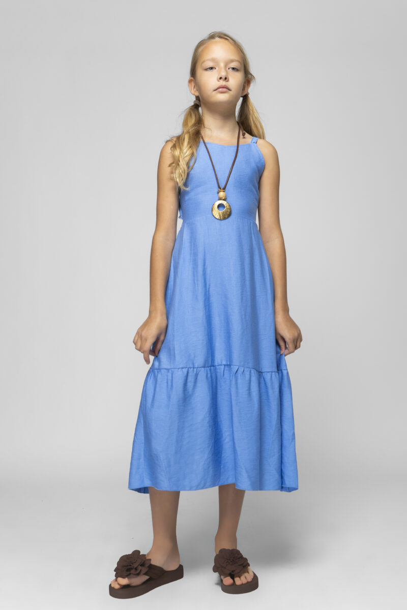 Μακρύ αεράτο φόρεμα ανοιχτή πλάτη με δέσιμο και λάστιχο στην μέση.