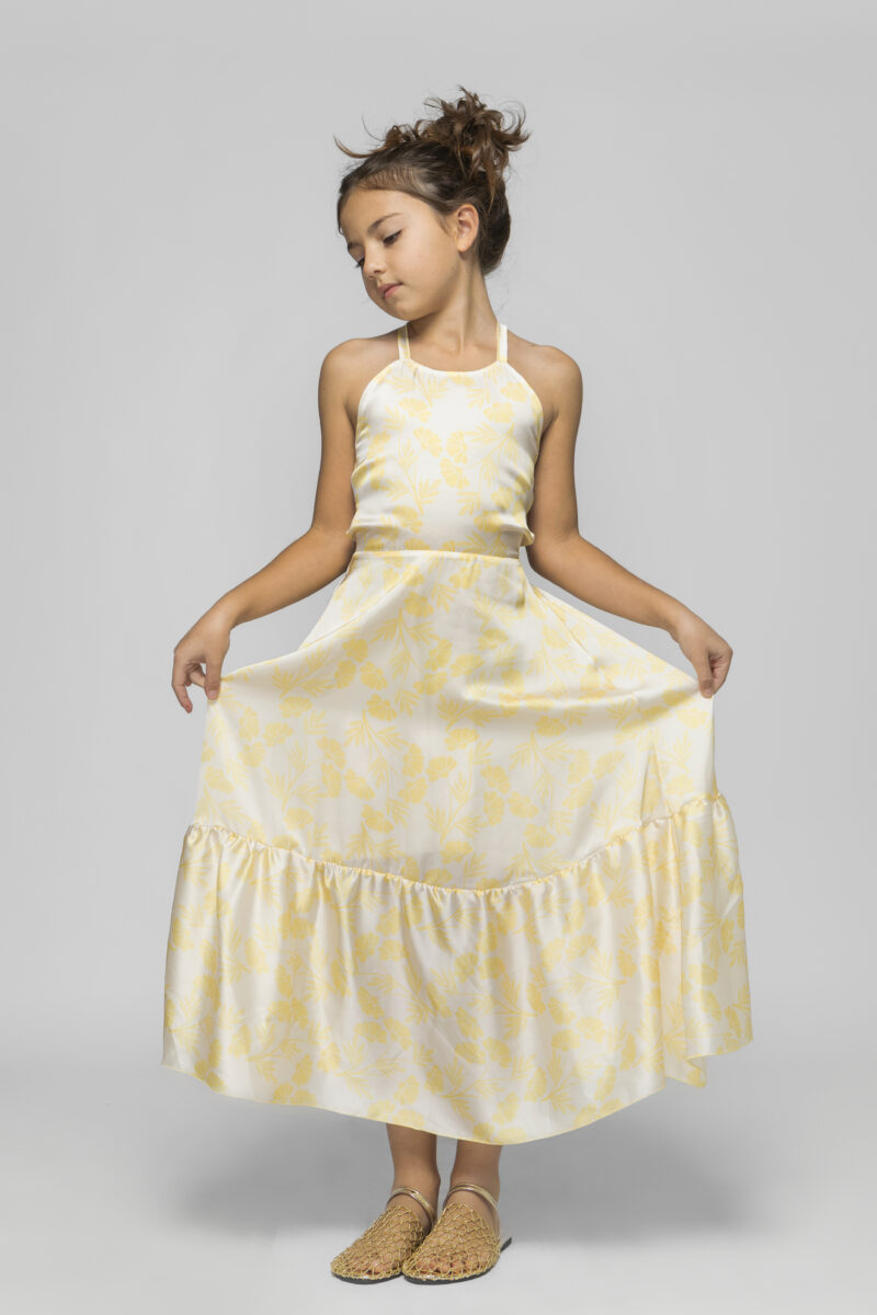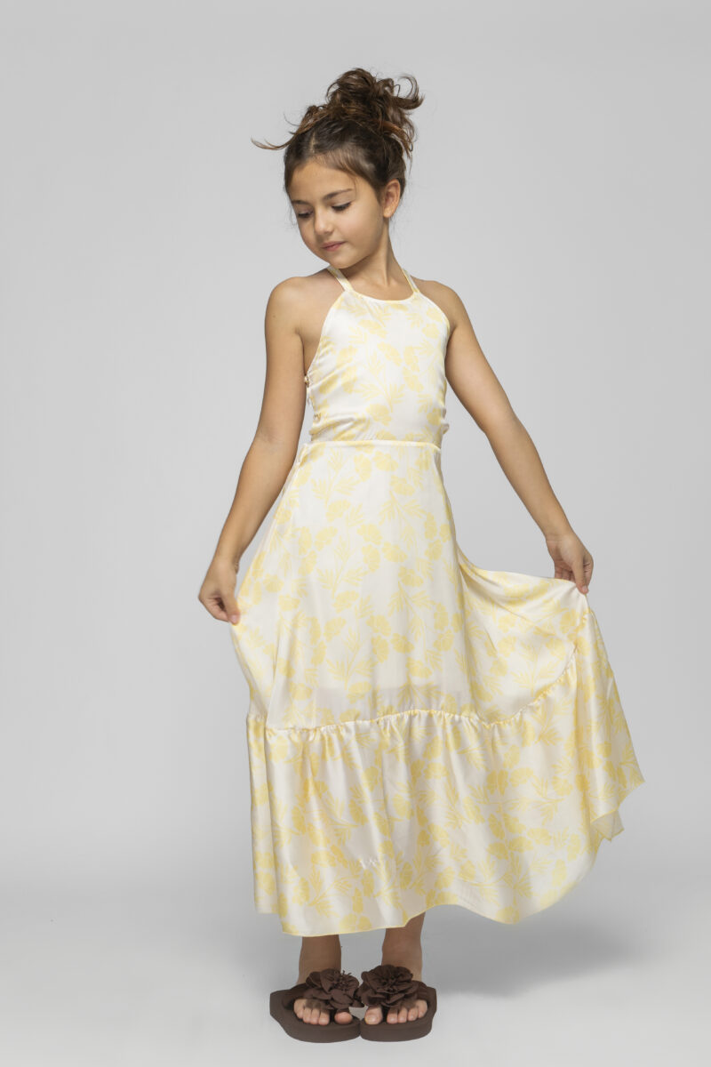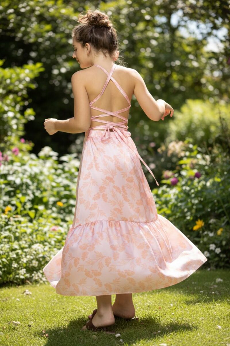 Μακρύ σατέν αεράτο φόρεμα ανοιχτή πλάτη με δέσιμο και λάστιχο στην μέση.