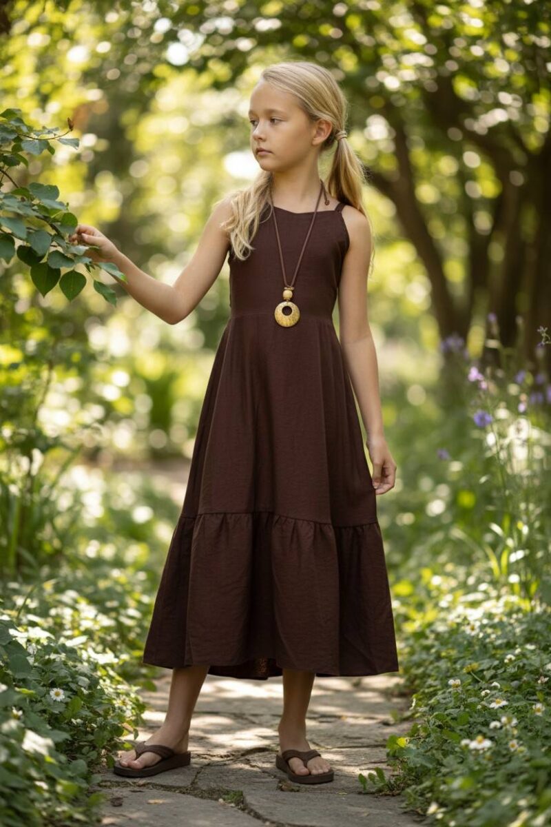 Μακρύ σοκολατί αεράτο φόρεμα ανοιχτή πλάτη