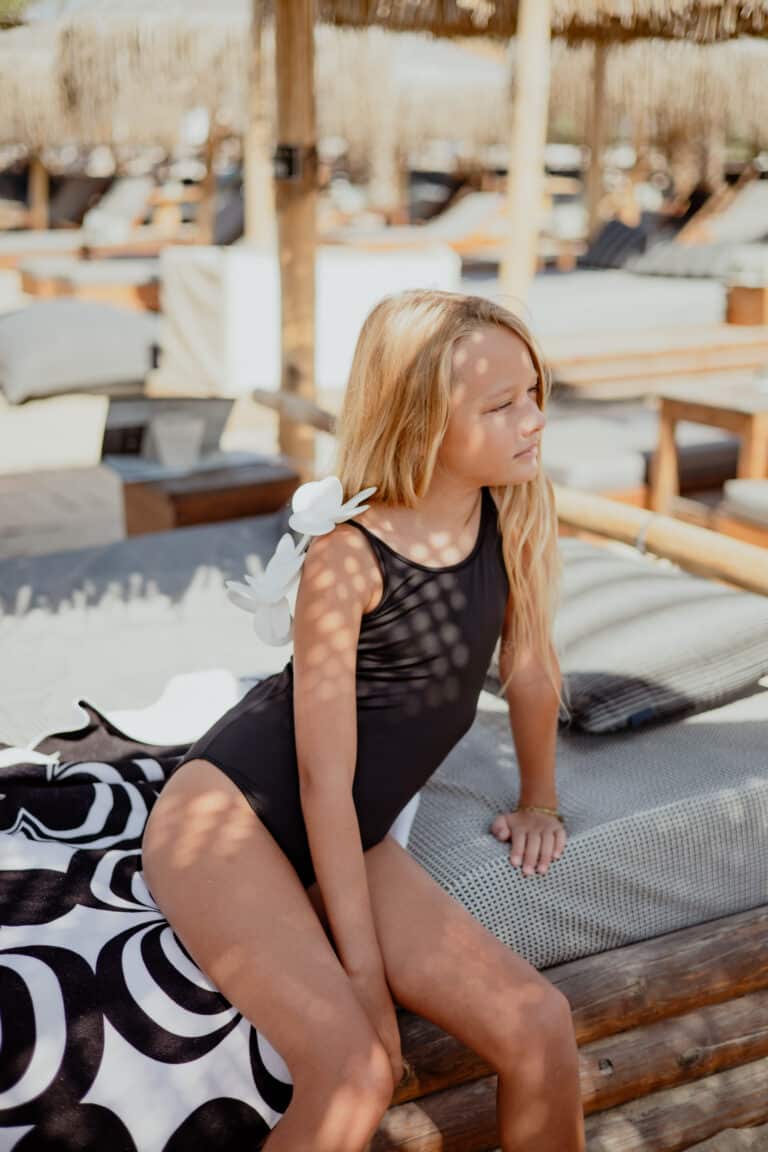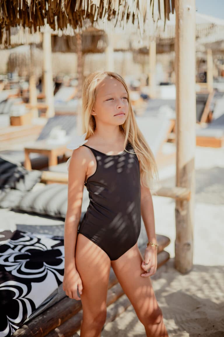 Ολόσωμο μαγιό μαύρο με λουλούδι 3D στη πλάτη