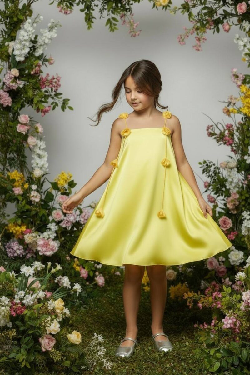 Σατέν φόρεμα με λουλούδια στης ράντες.Παραγωγή / Κατασκευή Αποκλειστικά στην ΕΛΛΑΔΑ