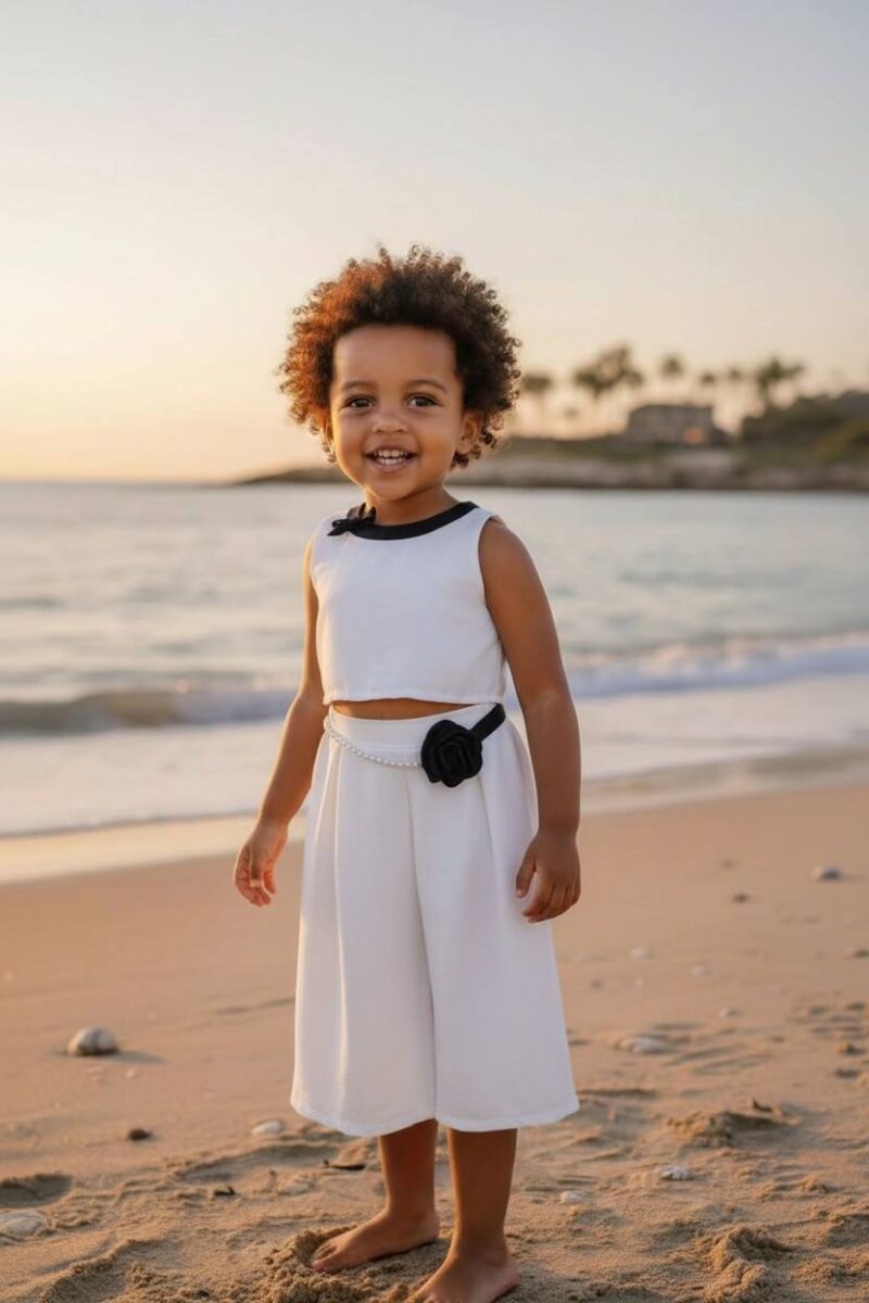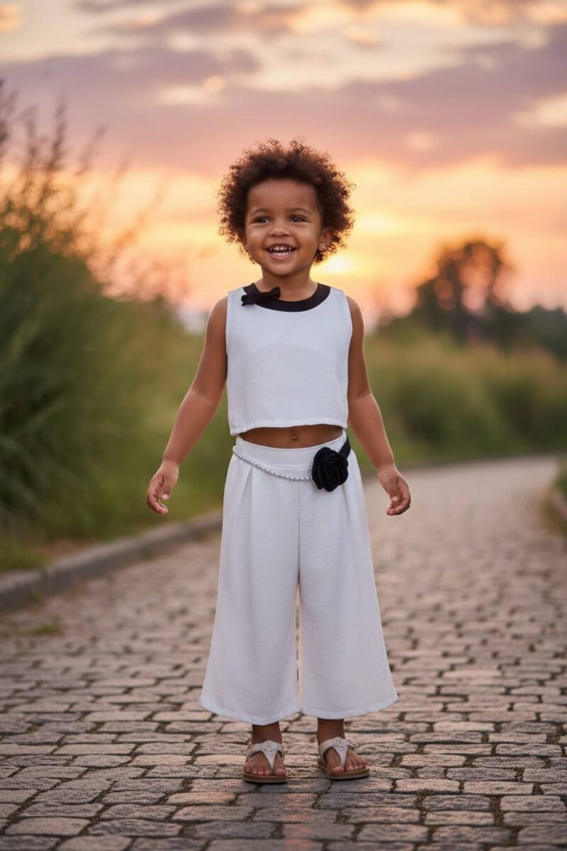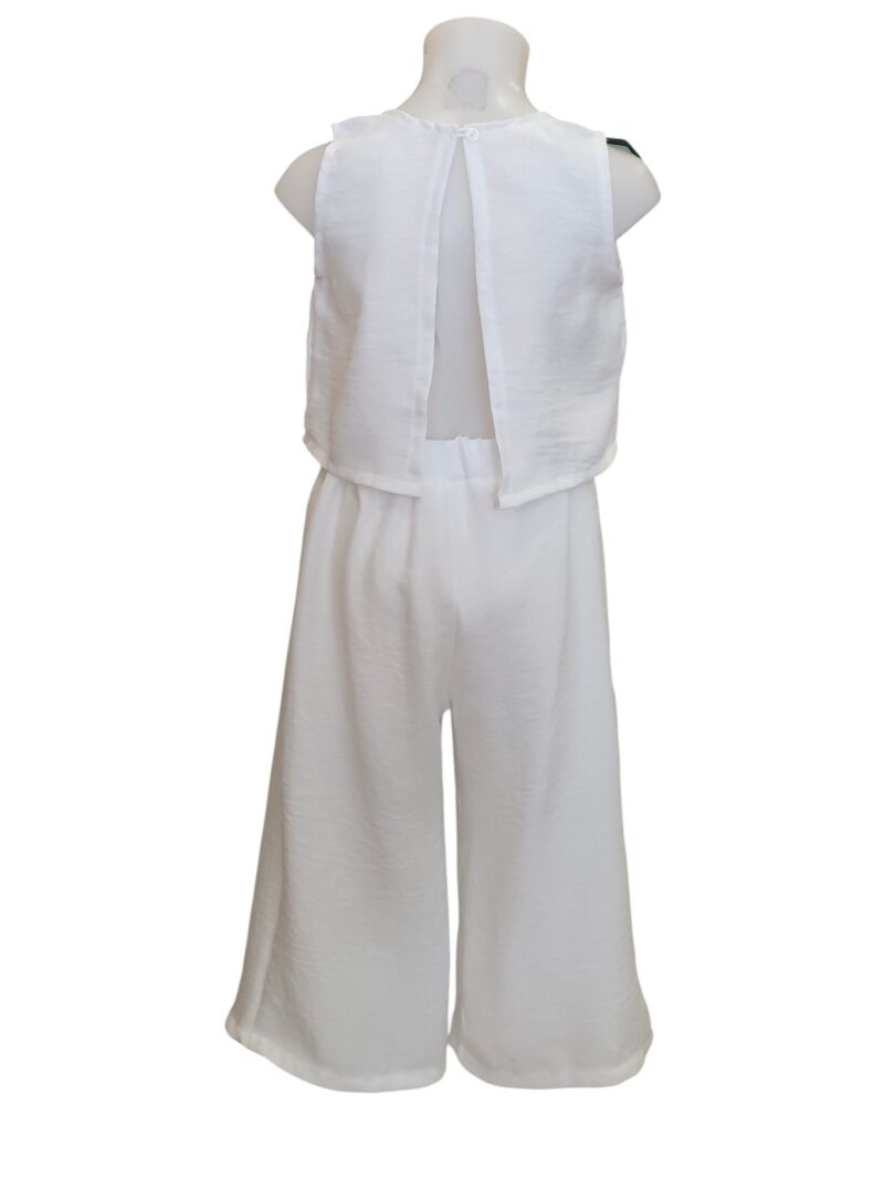 Σετ λευκού παντελόνι με πιέτες 3/4 μήκος με λάστιχο πιέσω και τοπάκι με αίνιγμα στη πλάτη. Παραγωγή / Κατασκευή Αποκλειστικά στην ΕΛΛΑΔΑ
