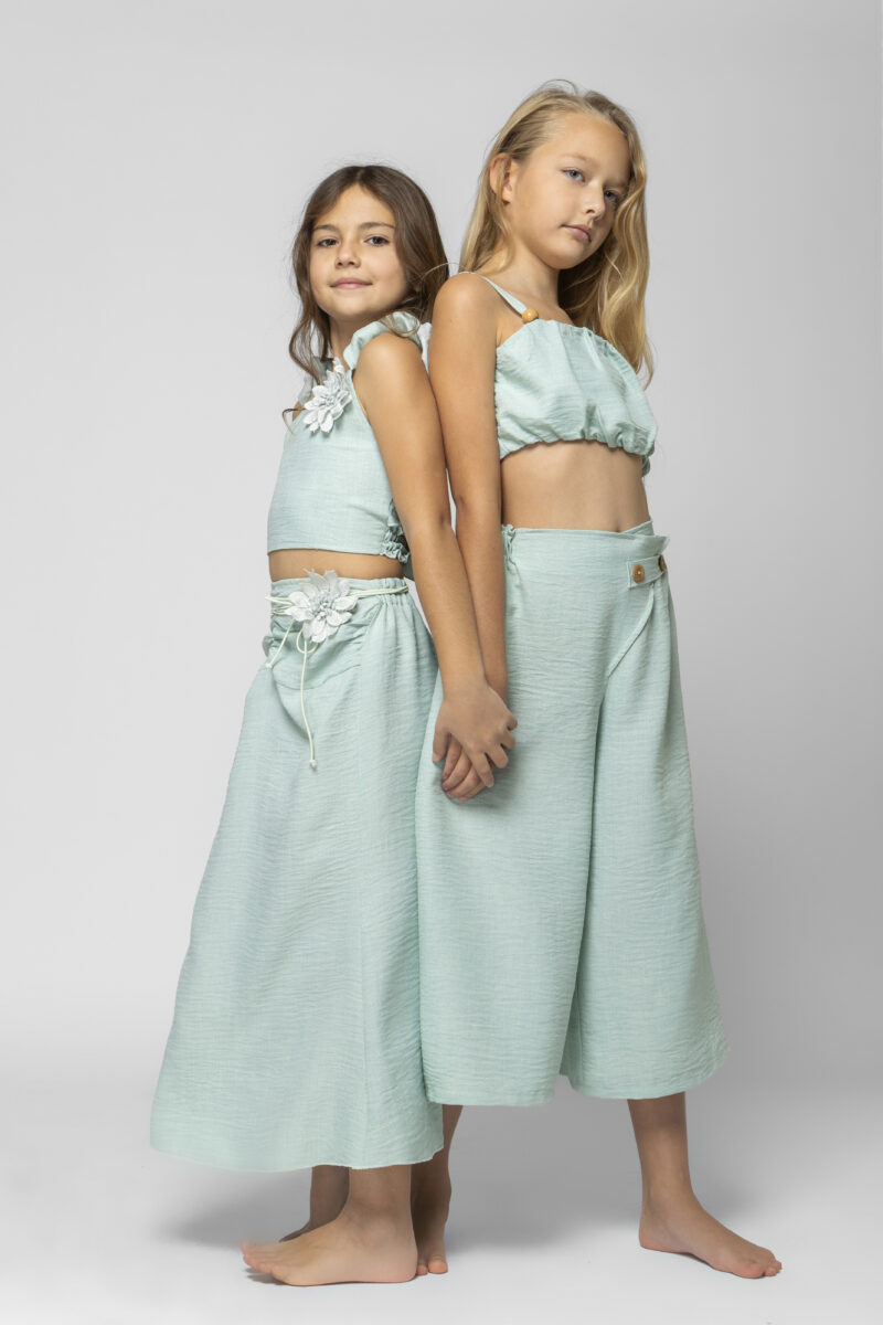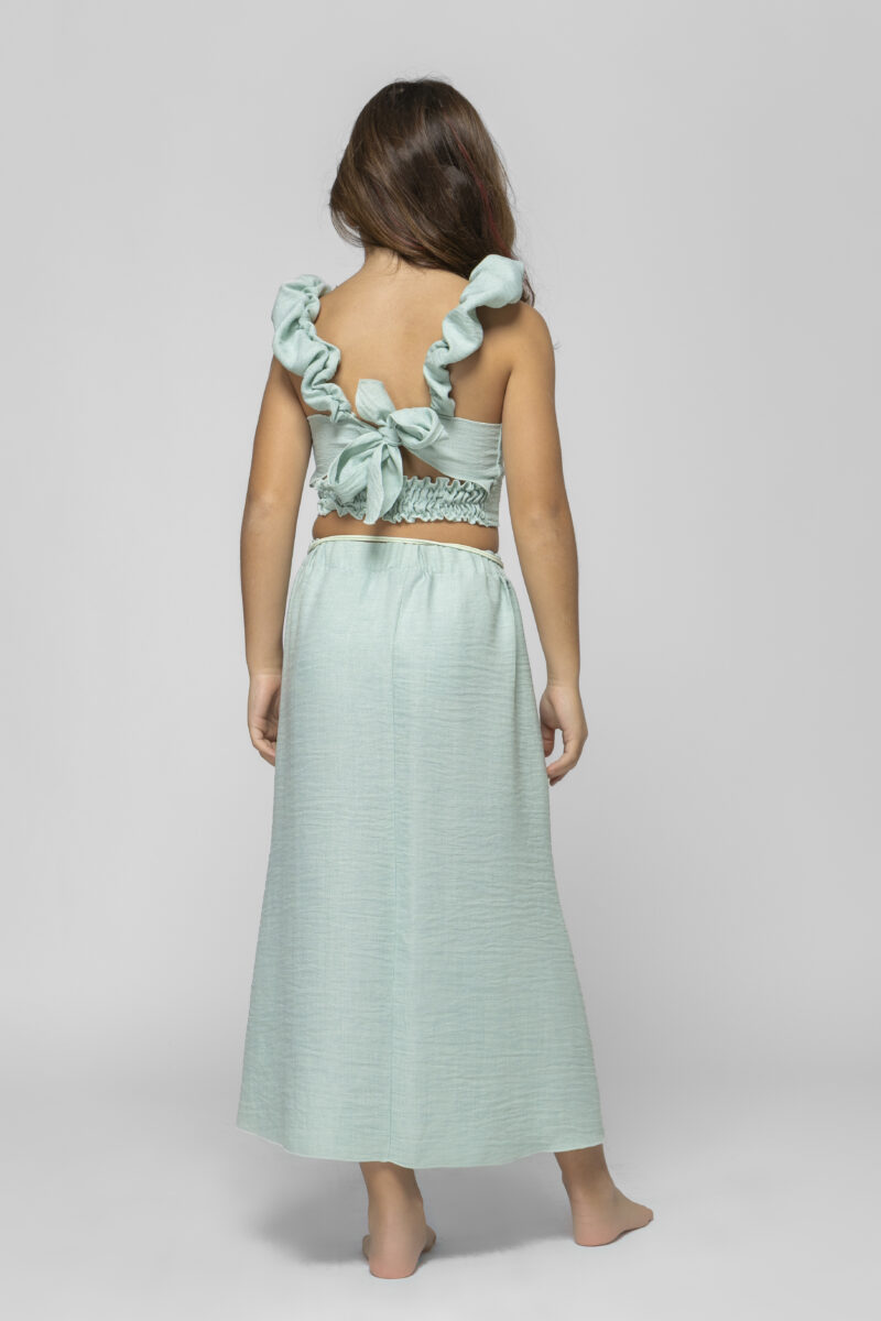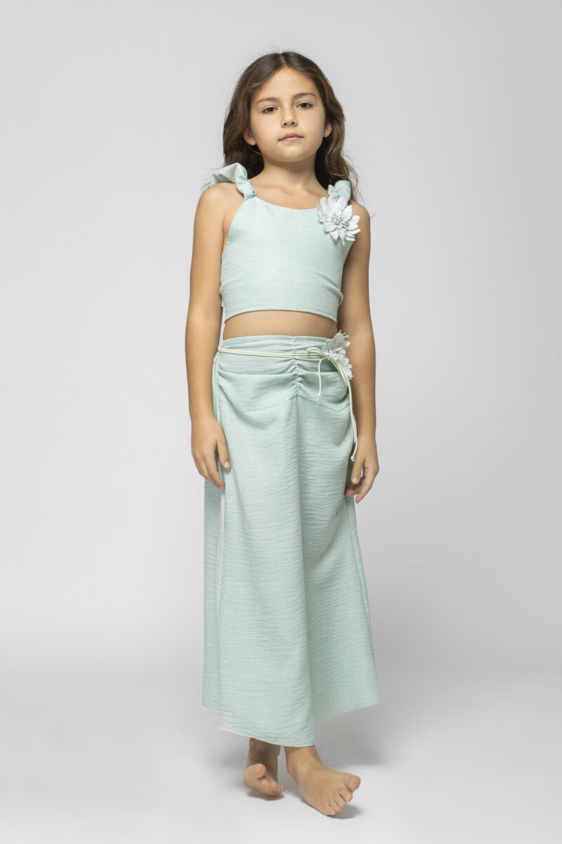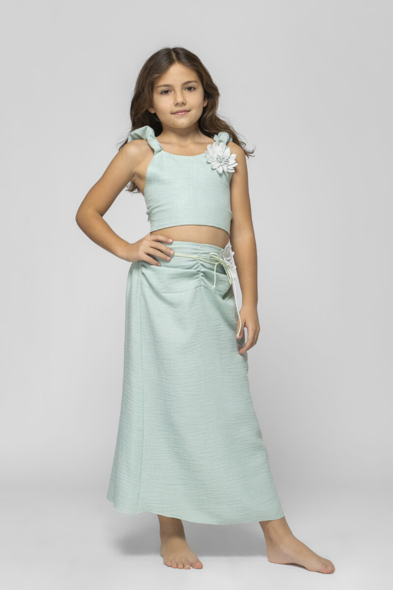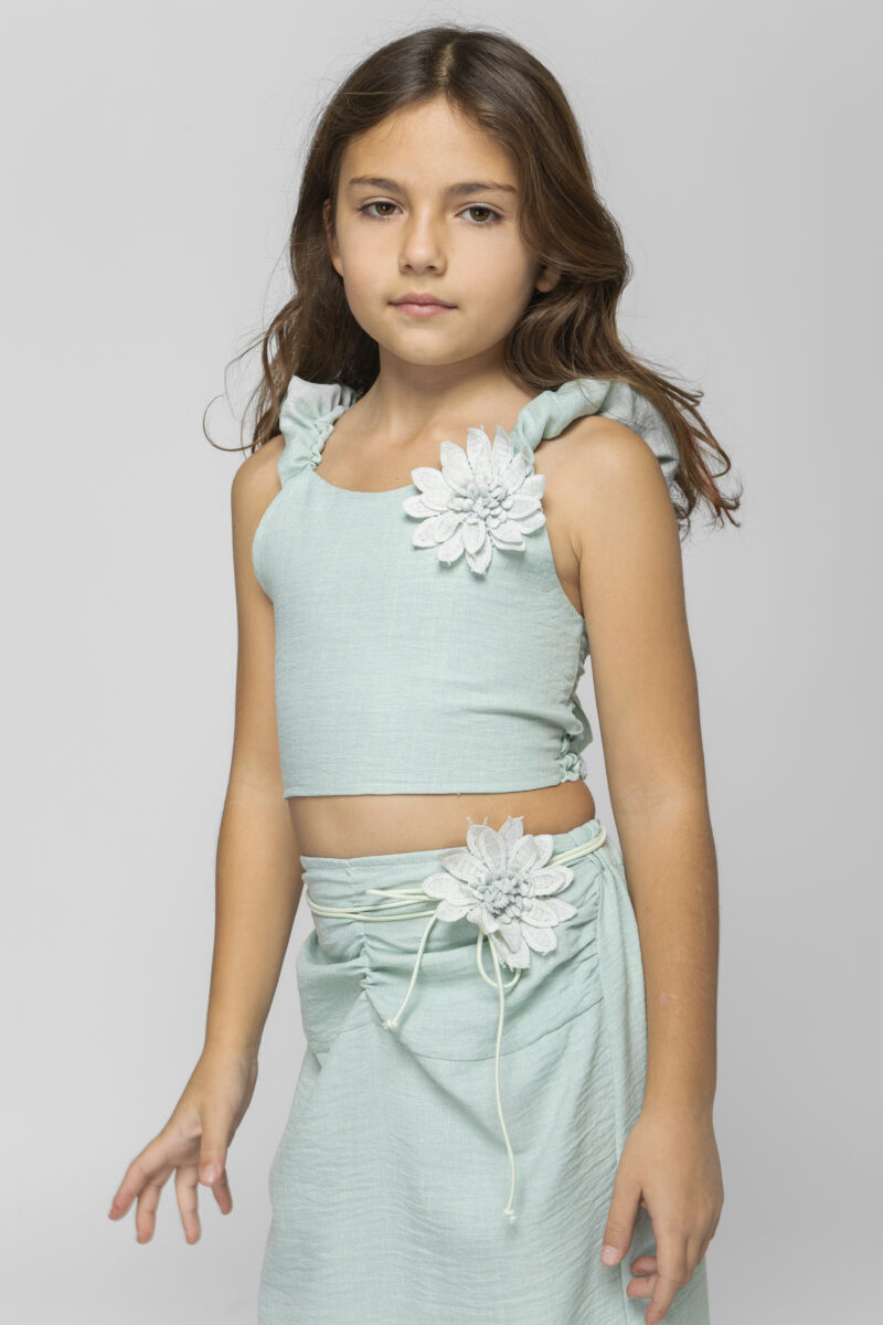 Σετ μέντα χρώμα τοπ με λουλούδι και φούστα