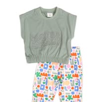 Σετ μπλούζα κροπ με λάστιχο και3/4 κολάν 34-8313