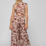 Σετ τοπ με λουλούδια και παντελόνι με άνοιγμα και ενσωματωμένο σορτς από κάτω