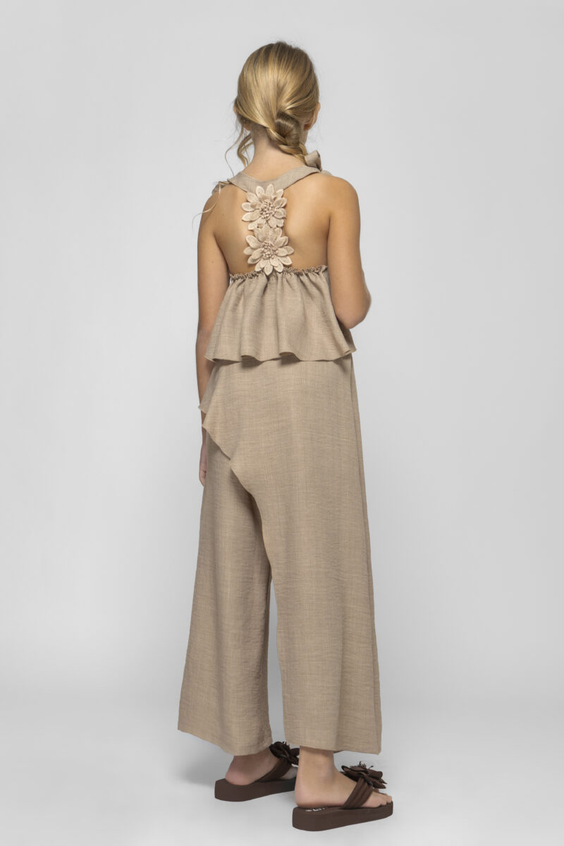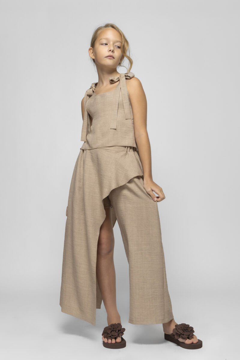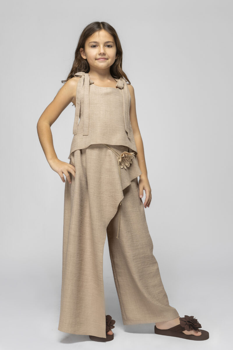 Σετ τοπ με λουλούδια στην πλατύ και παντελόνι με άνοιγμα και ενσωματωμένο σορτς