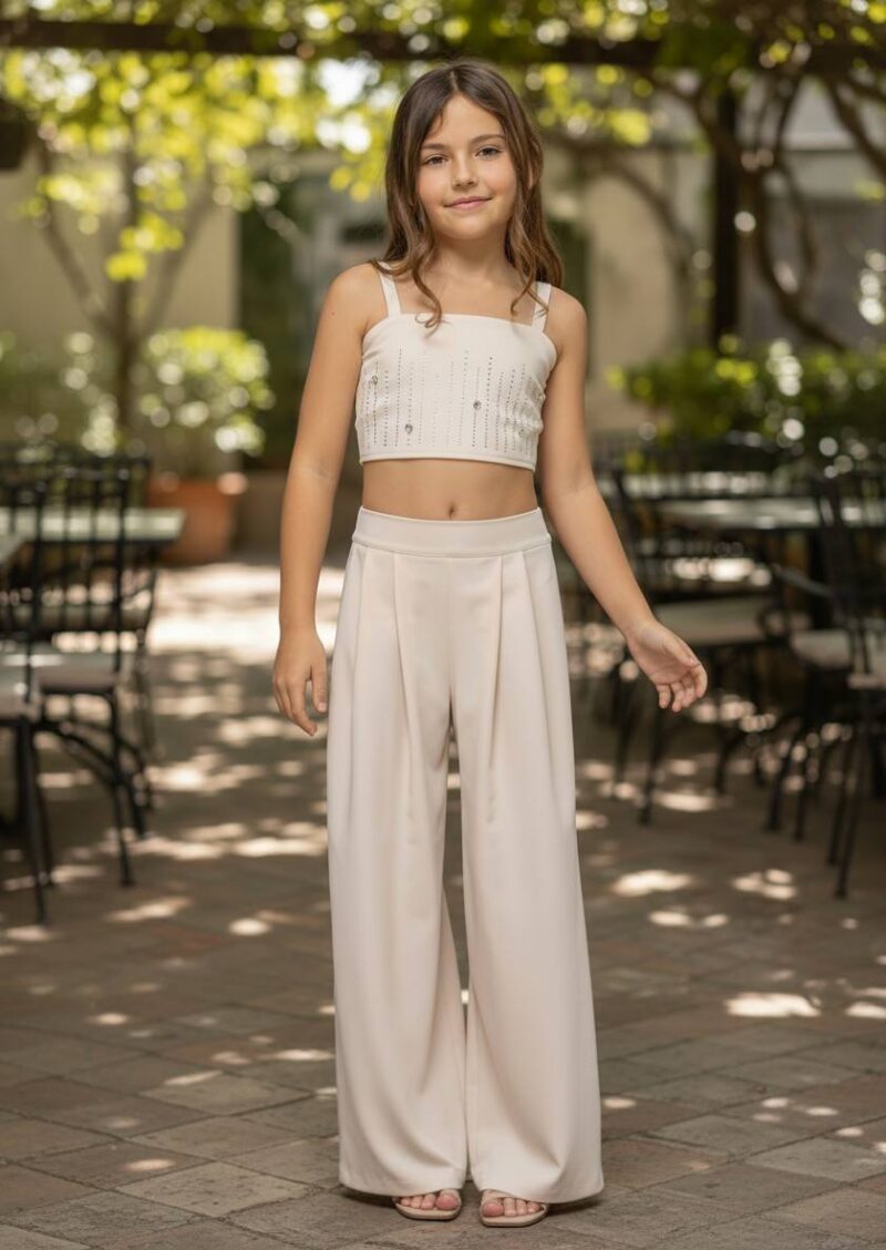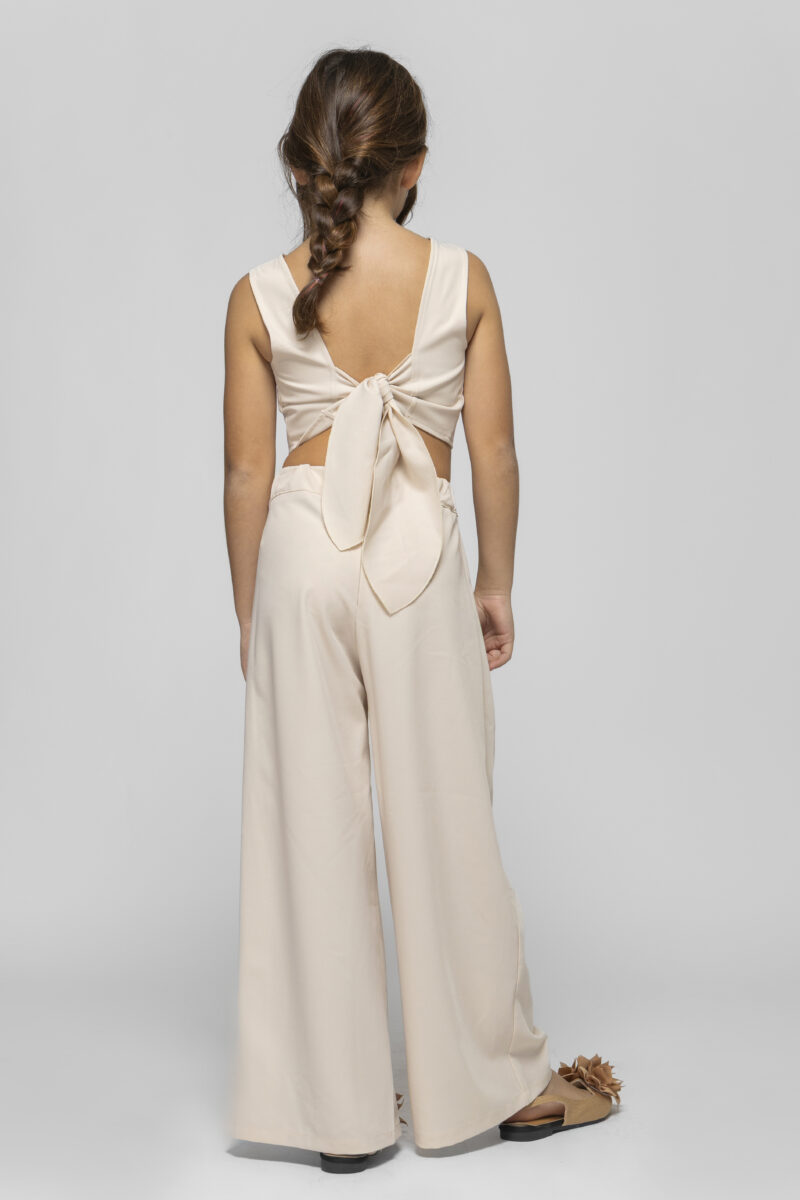 Σετ τοπ με στρας και ανοιχτή πλάτη με δέσιμο! Παντελόνι μακρυ με λάστιχού μπεζ χρώμα . Συνδυάζετε με το σακάκι με κωδικό GNS909Β στο ίδιο χρώμα και ύφασμα.