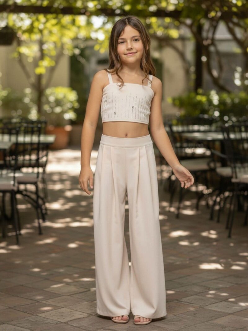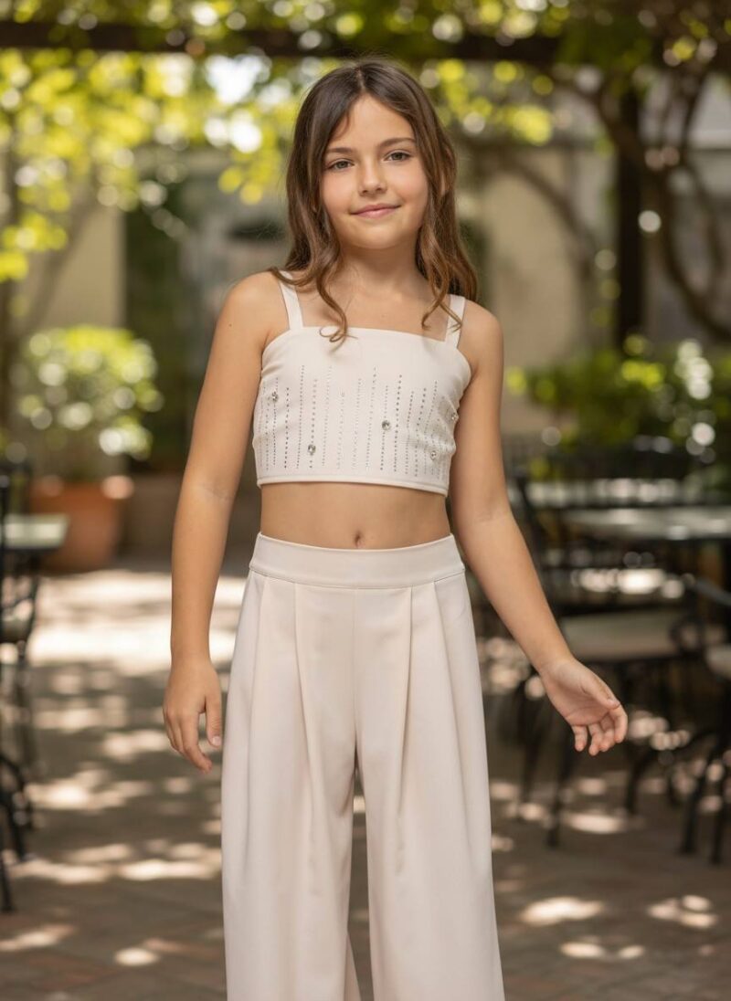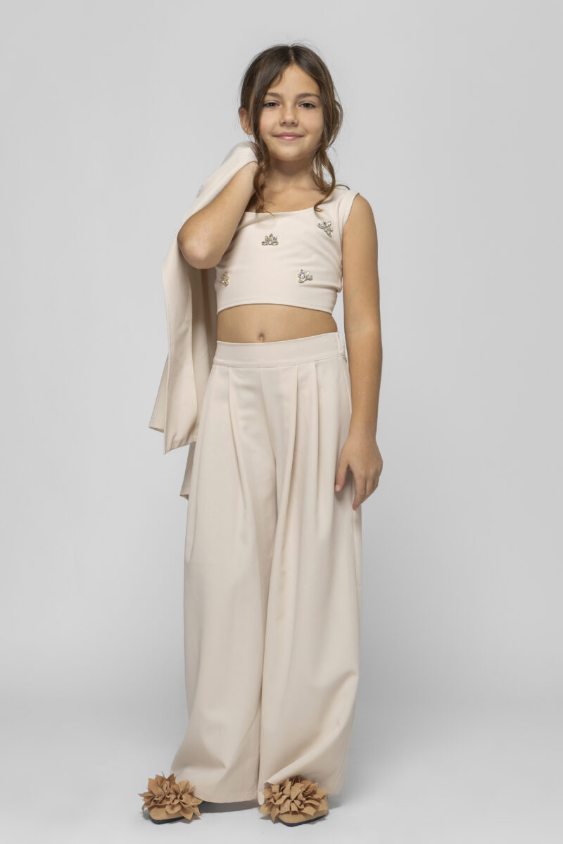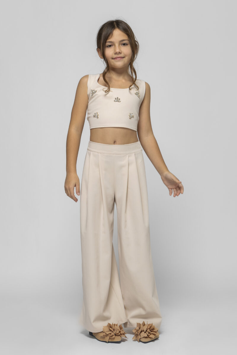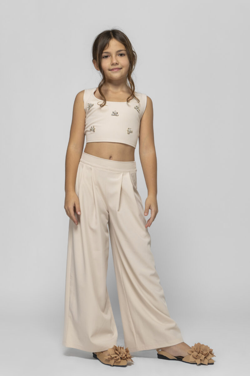 Σετ τοπ με στρας και Παντελόνι μπεζ χρώμα