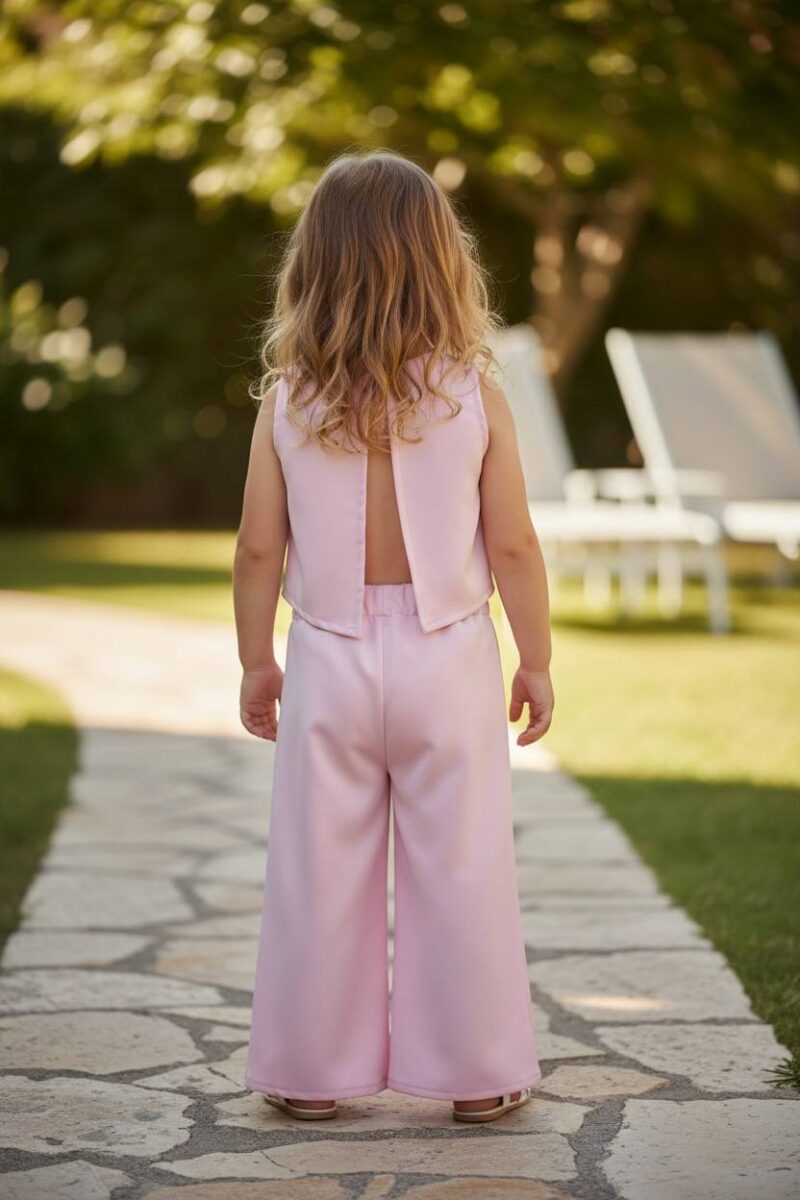 Σετ τοπ με 3D λουλούδια ανοιχτή πλάτη με παντελόνι
