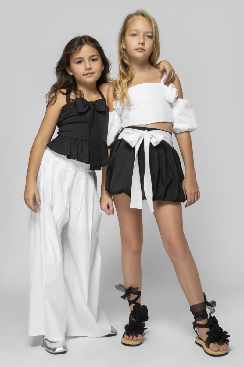 Σετ top με λουλούδια και αποσπασμένα μανίκια με ανοιχτή πλάτη με δέσιμο! Φούστα μπάλου με διακοσμητικο ζωνακι.
