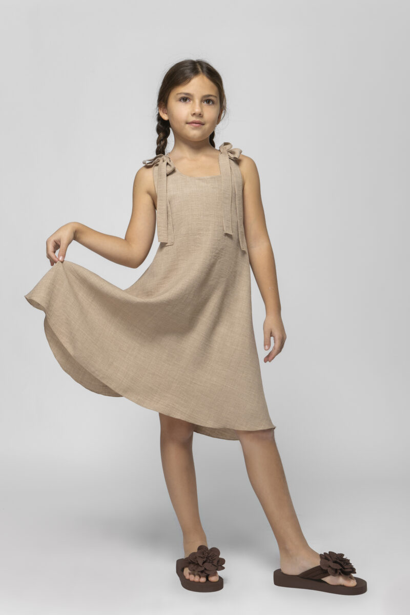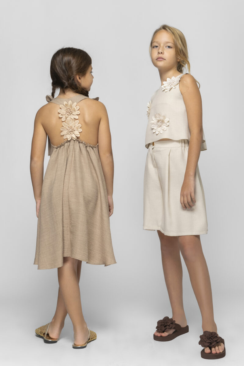 Φόρεμα σοκολάτα με λουλούδια και πλάτη ανοιχτή με λάστιχο 3cm . Συνδυάζετε με το μακρυ πανωφόρι με κωδικό GNS941 στο ίδιο χρώμα και ύφασμα. Παραγωγή / Κατασκευή Αποκλειστικά στην ΕΛΛΑΔΑ
