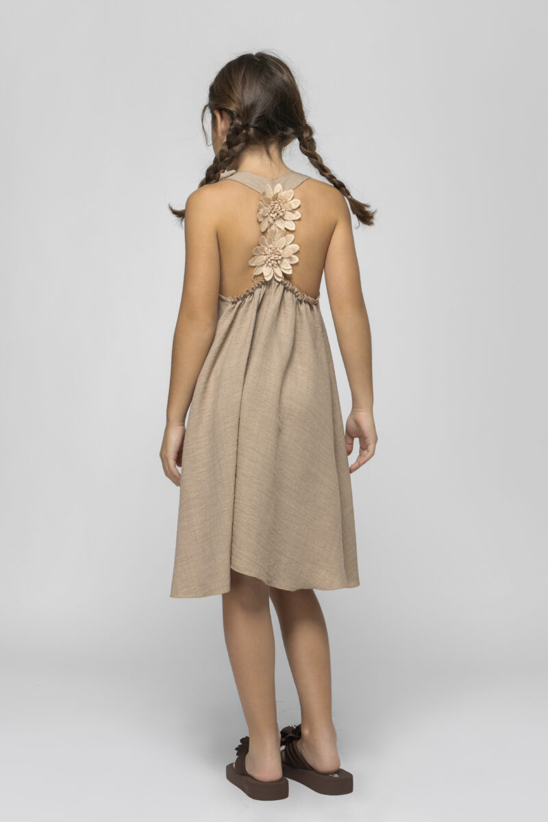 Φόρεμα σοκολάτα με λουλούδια και πλάτη ανοιχτή