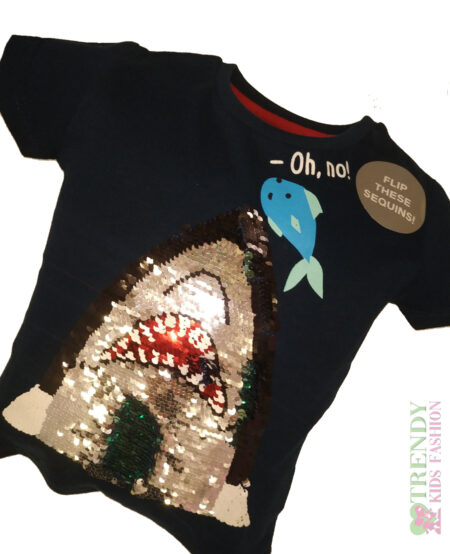 Παιδική μπλούζα κοντομάνικη για αγόρι από 1 έως 6 ετών, σε χρώματα navy μπλε με τύπωμα “SHARK”