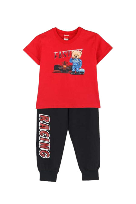 Το σετ διαθέτει κοντομάνικη μπλούζα με τύπωμα και μακρύ παντελόνι φόρμας με λάστιχο στη μέση.ΣΥΝΘΕΣΗ 100% βαμβάκι