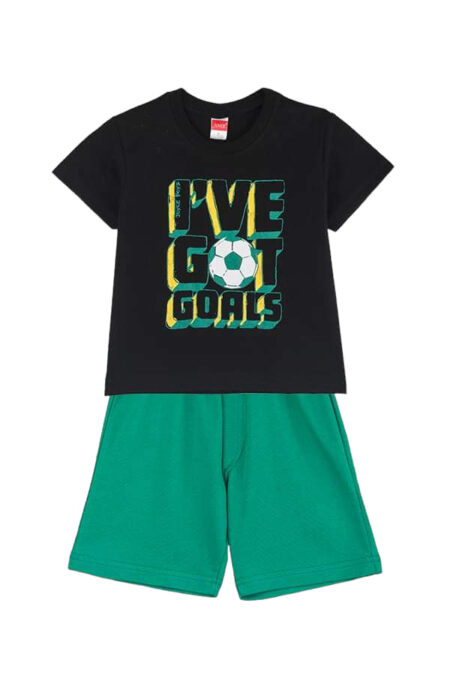 Το σετ διαθέτει κοντομάνικη μπλούζα αχνούδιαστη με τύπωμα και βερμούδα με λάστιχο στη μέση.ΣΥΝΘΕΣΗ 100% βαμβάκι