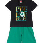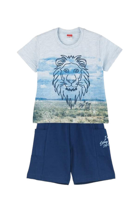 Τεο σετ περιλαμβάνει κοντομάνικη μπλούζα με τύπωμα και βερμούδα cargo με τσέπη και λάστιχο στη μέση.ΣΥΝΘΕΣΗ 100% βαμβάκι