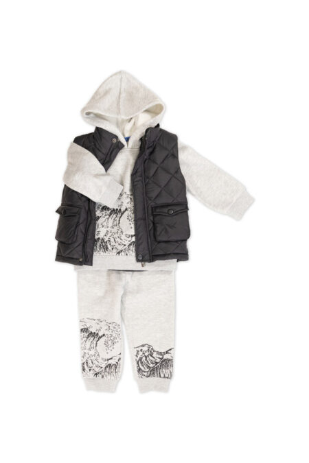Σετ 3 Τεμαχίων με χνουδιασμένη φόρμα και αμάνικο μπουφάν 3809
