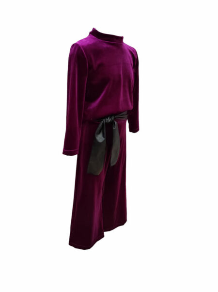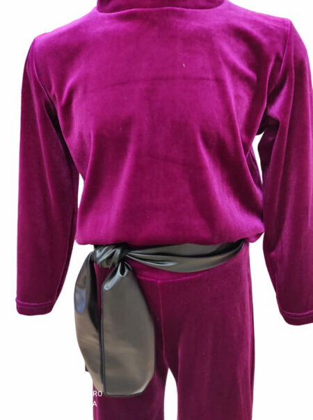 Σετ βελουτέ με παντελόνι καμπάνα με ζώνη και μπλούζα (ματζεντα)