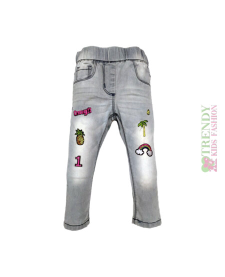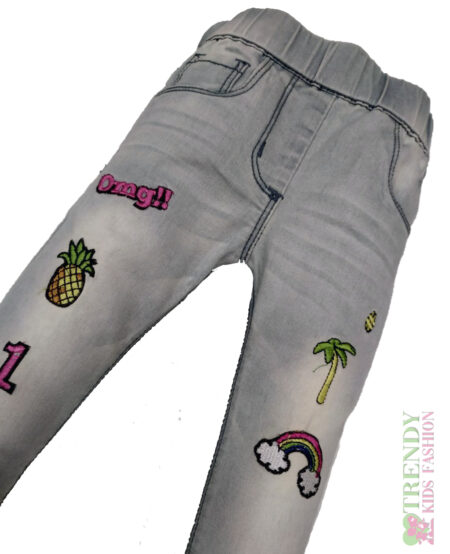 Τζιν παντελόνι με λάστιχο στη μέση και σχέδια μπροστά “OMG”