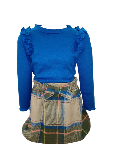 Σετ με φούστα και πλεκτο μπλουζάκι μπλε χρώμα