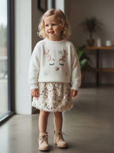 Σετ πλεκτο μοχερ με φούστα πούπουλα με παγιετα