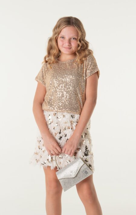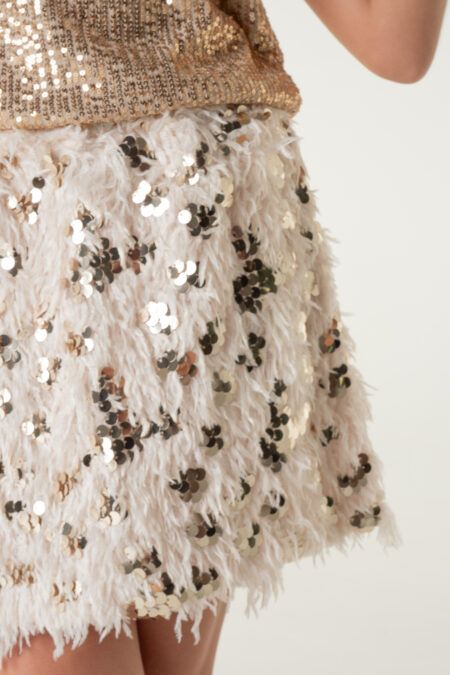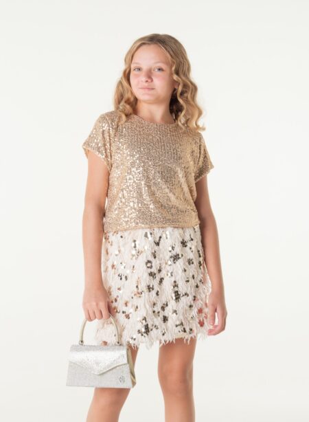 Σετ τοπ μακριά μανίκια με παγιετες και φούστα με πούπουλα