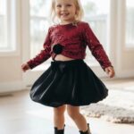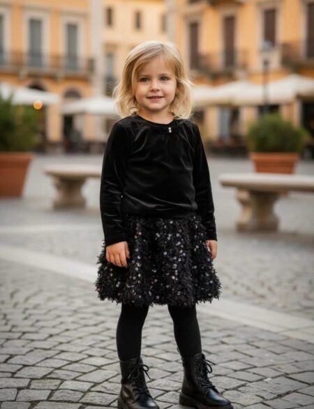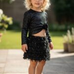 Σετ τοπ μαύρο βελούδο με καρφίτσα και φούστα πούπουλα με παγιετα