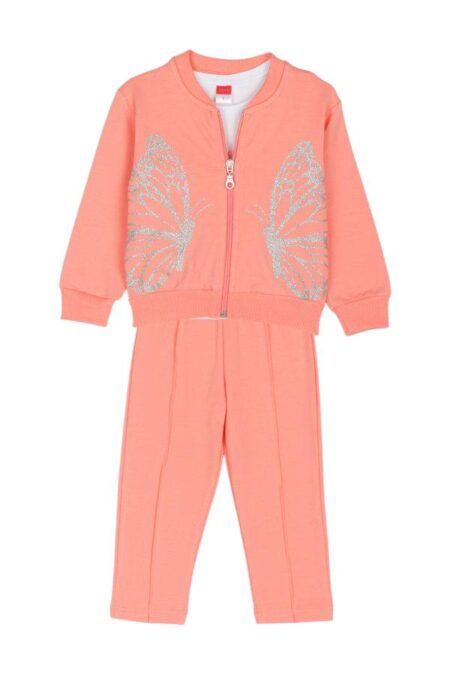 - Ζακέτα σε κοραλί χρώμα με τύπωμα “butterfly” και γκλίτερ.