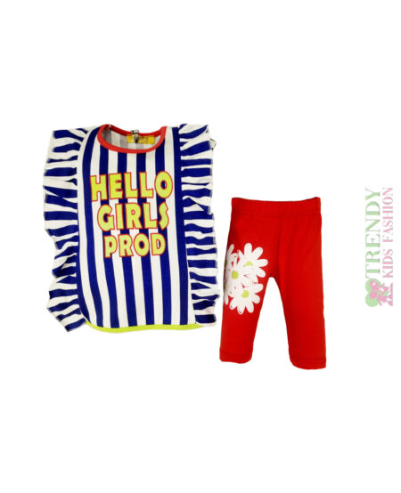 Σετ μπλούζα ριγέ μπλε με κολαν κόκκινο “HELLO GIRL”