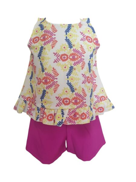 Παιδικό σετ με βολάν στον ποδόγυρο .Σορτς με σούρα και λάστιχο 3cm περιμετρικά στην μέση .