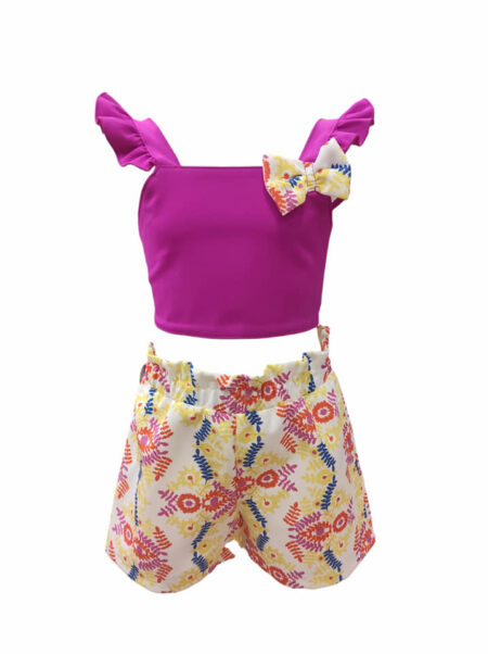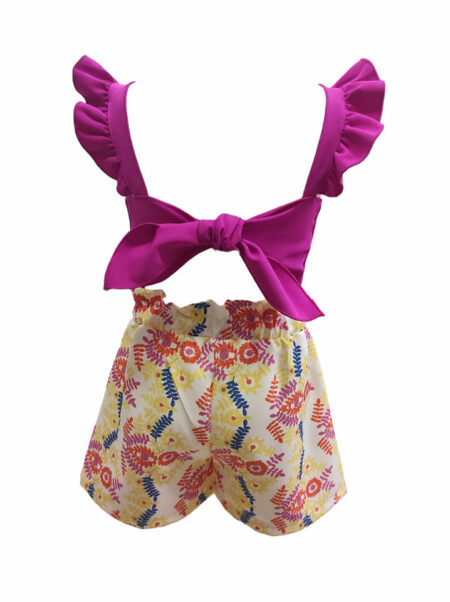 Σετ κροπ-τοπ με δέσιμο από πίσω και σορτς με λάστιχο στην μεση.