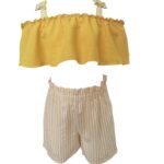 Σετ με κεντημένο τοπάκι και σορτς με λάστιχο 2cm στην μέση .