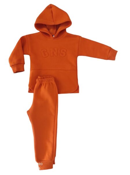 Σετ φόρμα φούτερ με κουκούλα σε πορτοκαλί χρώμα