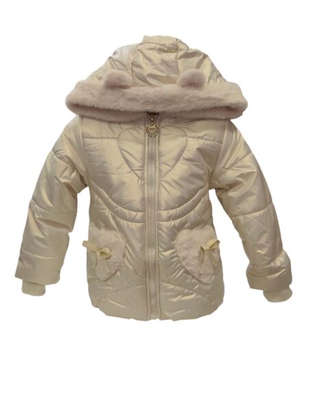 Μπουφάν μπεζ μεταλιζέ με γούνινη επένδυση