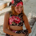 Καπέλο εκρού καβουράκι με κορδέλα all-over animal rose. Το ύφασμα είναι ελαστικό ίδιο με το μαγιό.