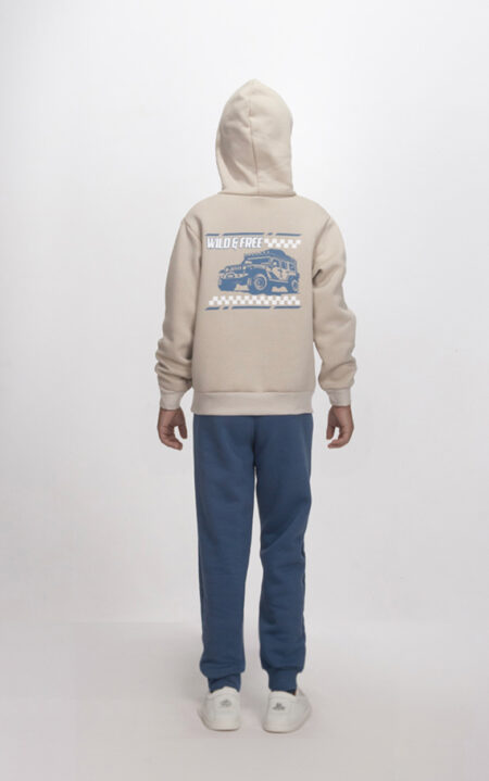 - Φούτερ με κουκούλα και τύπωμα αυτοκίνητο στην πλάτη σε χρώμα μπέζ.