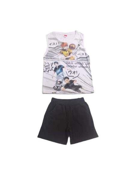 Σετ μπλούζα-βερμούδα από μαλακό βαμβάκι της εταιρίας Joyce. Η μπλούζα είναι αμάνικη με εκτύπωση στο μπροστινό μέρος και η βερμούδα είναι με λάστιχο στην μέση για άνετη εφαρμογή.