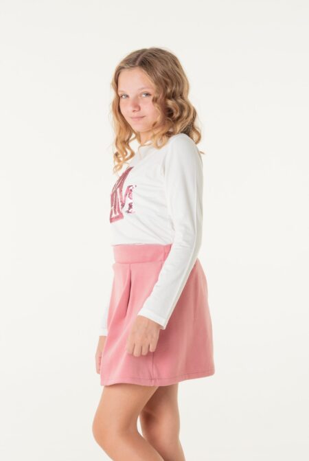 Φούστα με πιέτες φερμουάρ πίσω και λάστιχο 3 cm στην μέση ροζ χρώμα