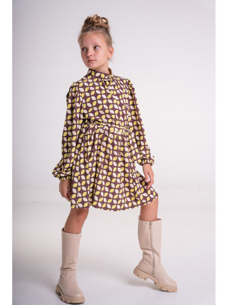 Παιδικό φόρεμα Ge.ni.us . Από μοντέρνο τυπωμένο ύφασμα με λάστιχο και ζώνη στην μέση . Σούρα στο μανίκι και άνοιγμα στο πίσω μέρος του λαιμού . Ιδανικό για ιδιαίτερες και ξεχωριστές εμφανίσεις .