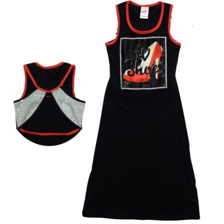 Παιδικό φόρεμα Scarabeo . Σε μακρυά ίσια γραμμή . Από μαλακό ελαστικό ύφασμα , τύπωμα εμπρός και εντυπωσιακή πλάτη .