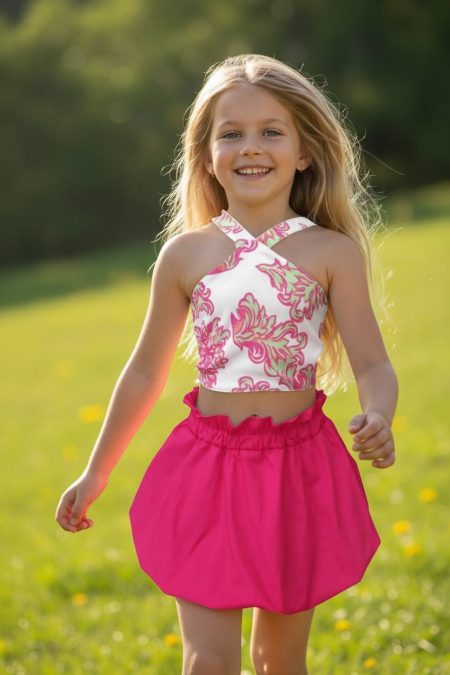 Σετ φούστα μπάλου με κροπ-τοπ φουξ χρώμα