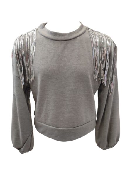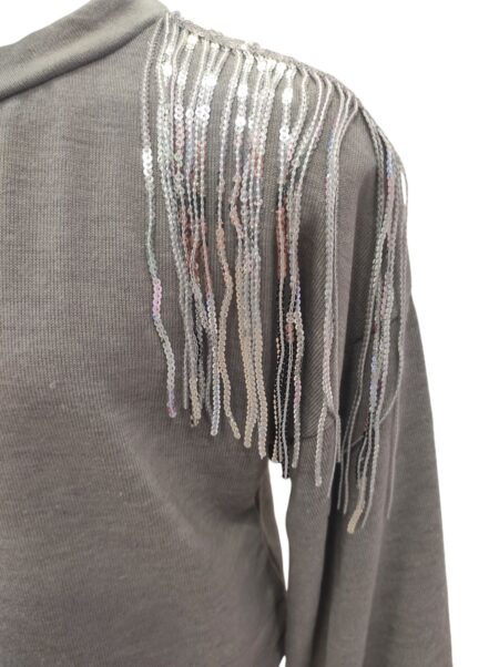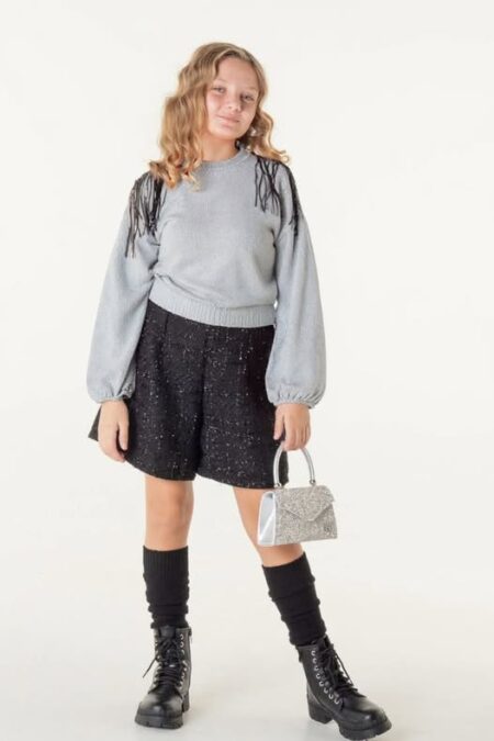 Πλεκτο μπλουζάκι με ασήμι κρόσσια παγιετα στους ωμούς
