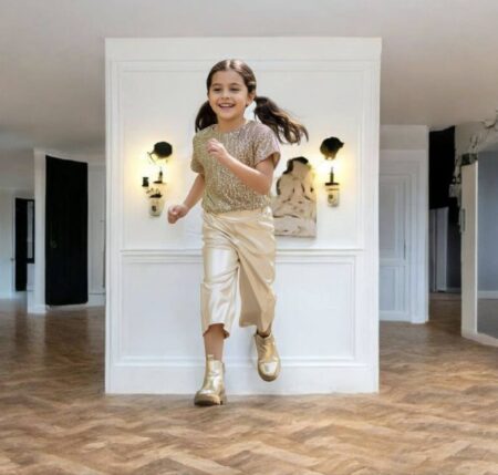 Σετ τοπ παγετα με χρυσο παντελόνι 3/4 δερματίνη