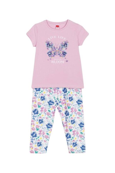 Σετ με λιλά μπλούζα και άσπρο κολάν καπρι.