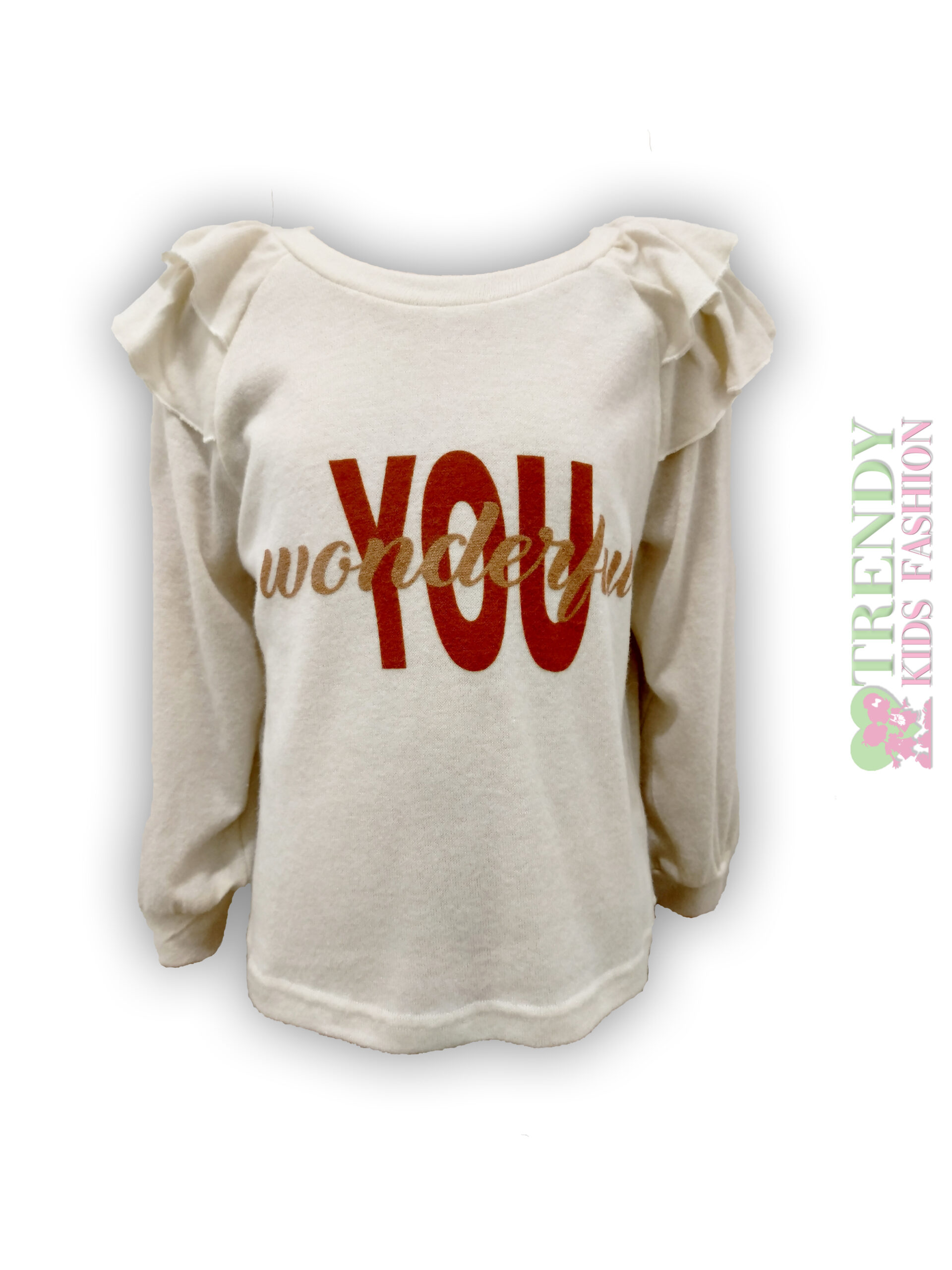 Μπλούζα πλεκτή με βολάν στα μανίκια και τύπωμα εμπρός