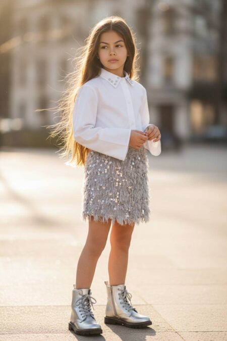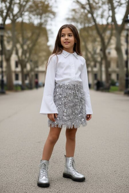 Σετ πουκάμισο με στρας στο γιακά και φούστα πούπουλα με παγετα.
