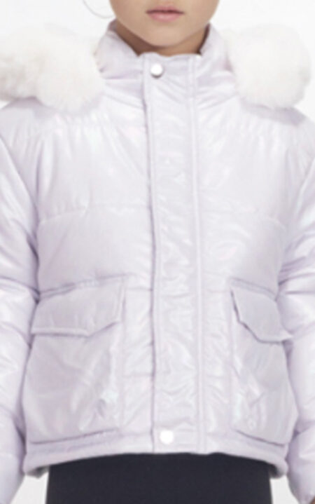 Μπουφάν γυαλιστερού λιλά με επενδύσει γούνα