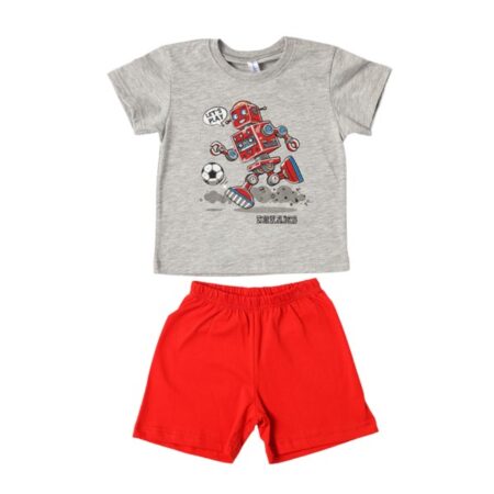 Πιτζάμα Αγόρι Let’s Play Γκρί-Κόκκινο 100% COTTON