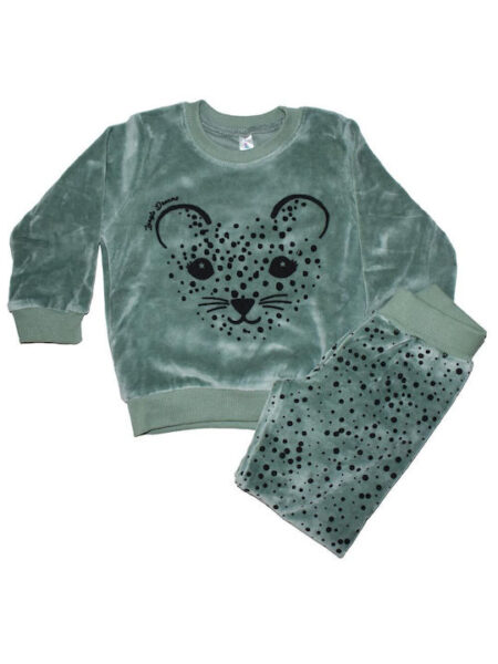 Παιδική Πιτζάμα Χειμωνιάτικη Βελούδινη Λαδί