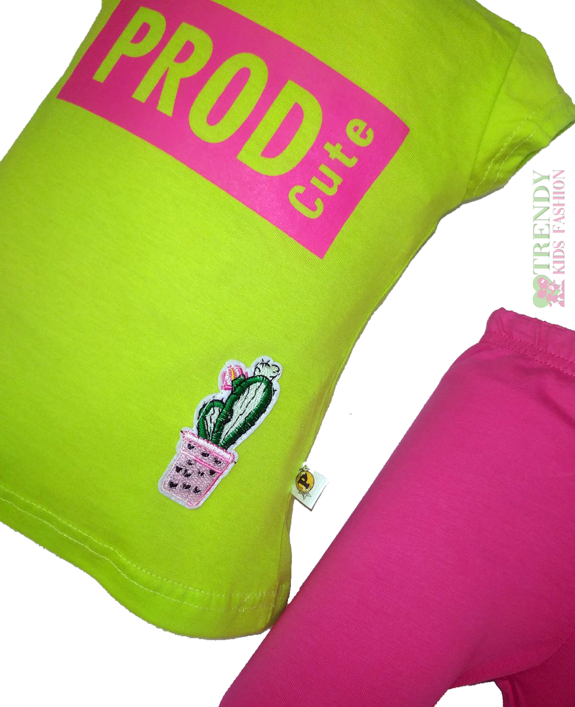 Σετ μπλουζάκι λαχανί με κολάν ροζ